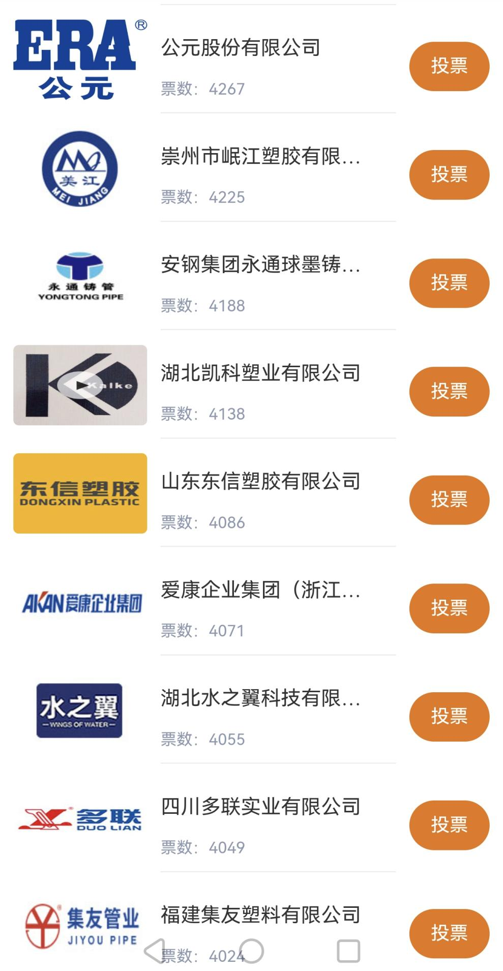 截至1月21日下午 4: 07 分,活动官网上共展示 302 家参评企业,总票数 926937 票,得票前10名如下: